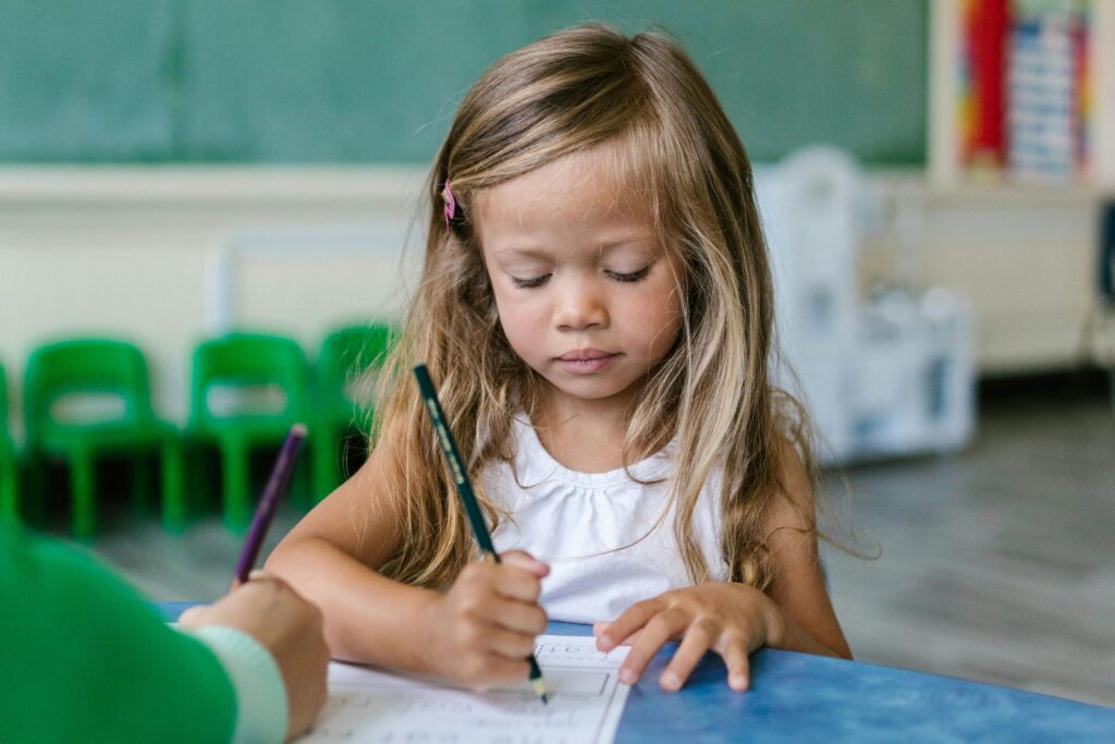 Children practicing handwriting